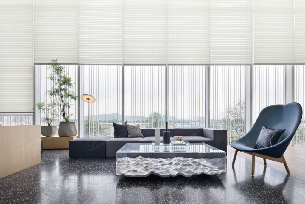 Also known as the Hanas blinds. It is not only a soft and fashionable shades, but also can adjust the light and scenery. Combining beauty and elegance with ensuring privacy, it is indeed a new model of window blinds design.